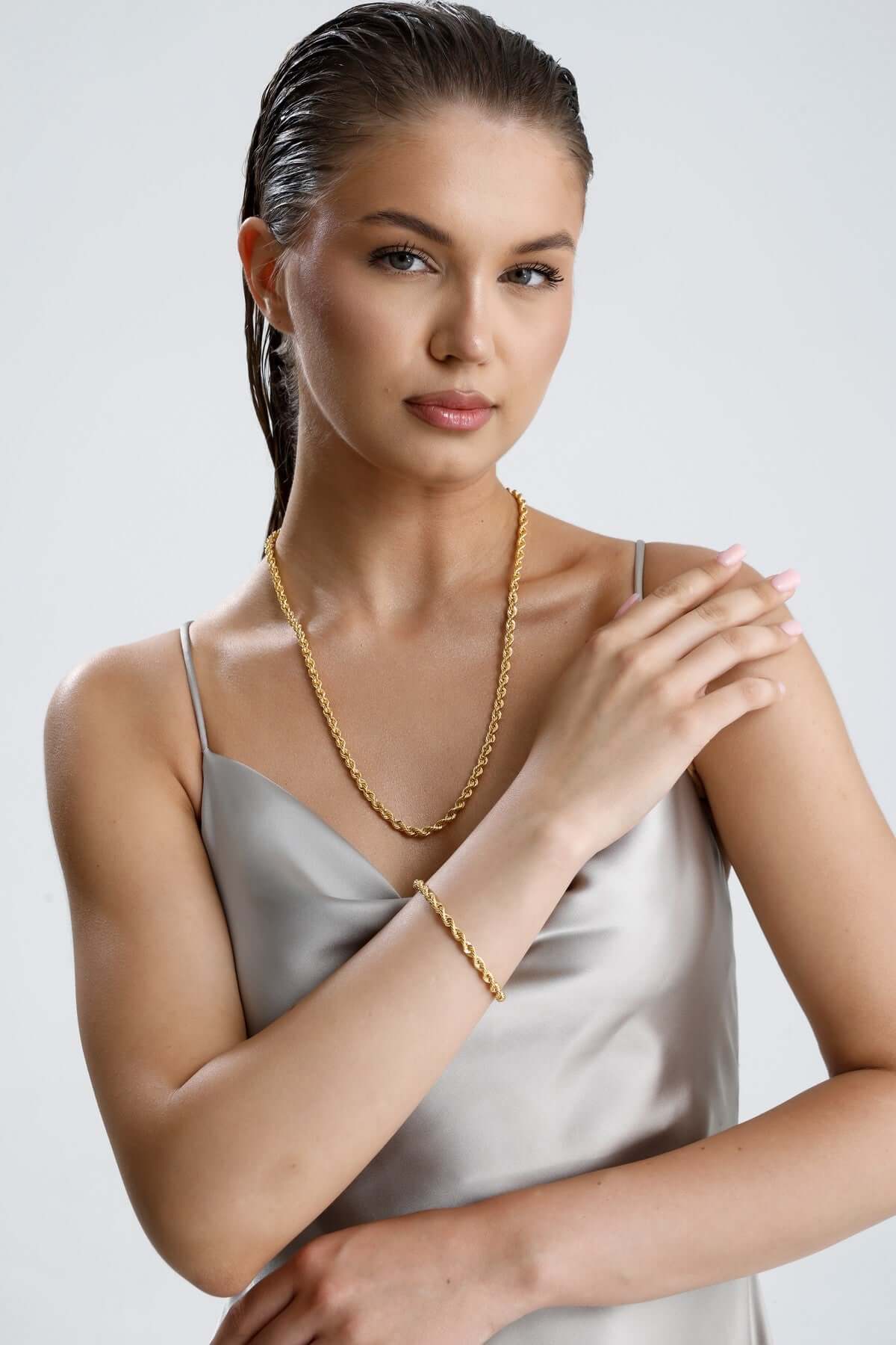 14 Ayar Altın Süzme Halat Zincir Bileklik