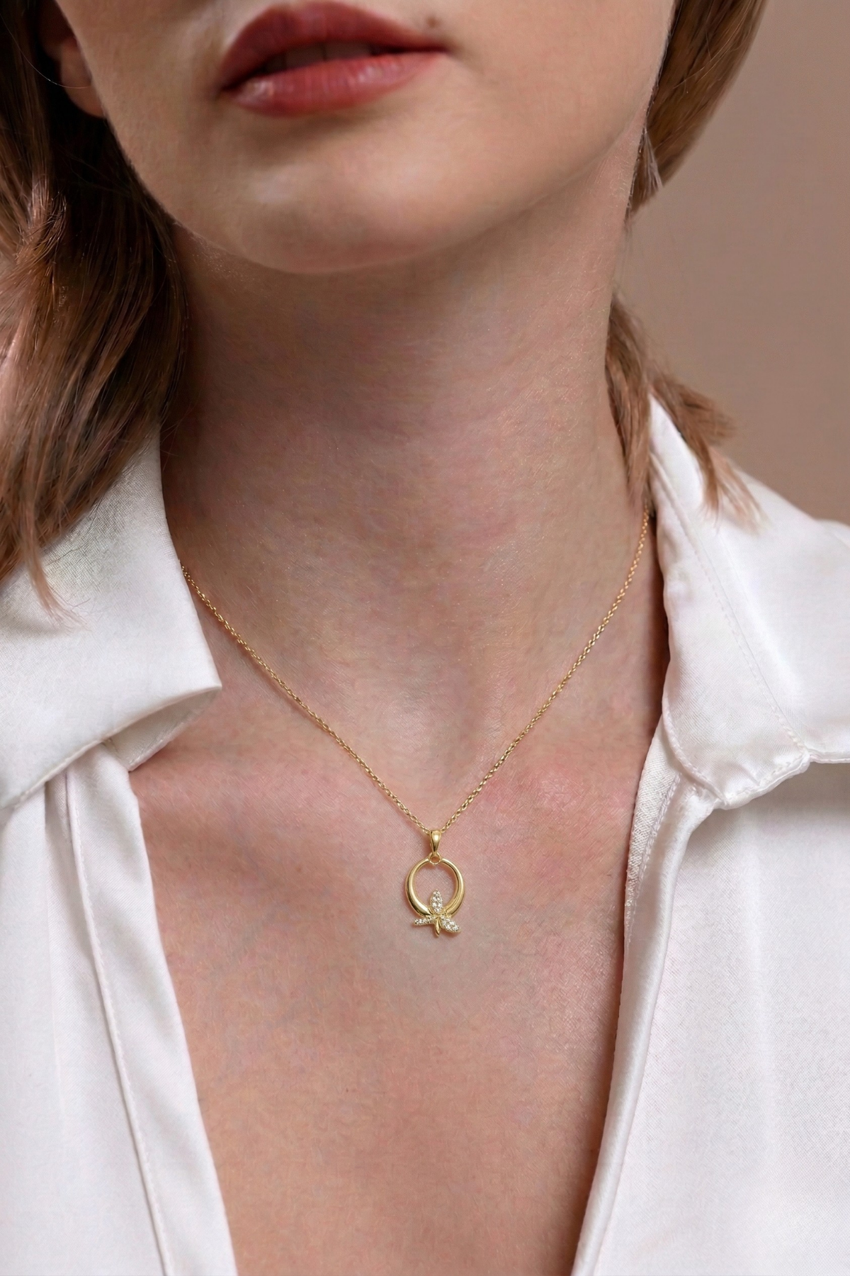 14 Ayar Altın Taşlı Yusufçuk Kolye