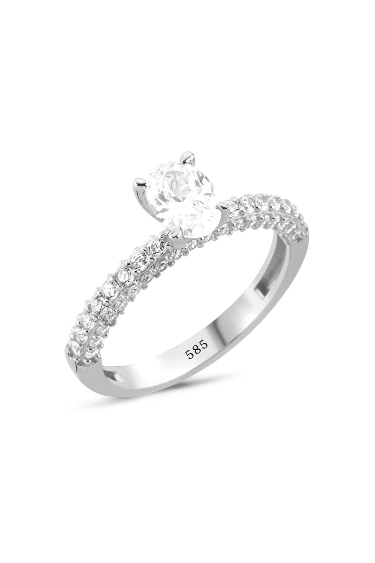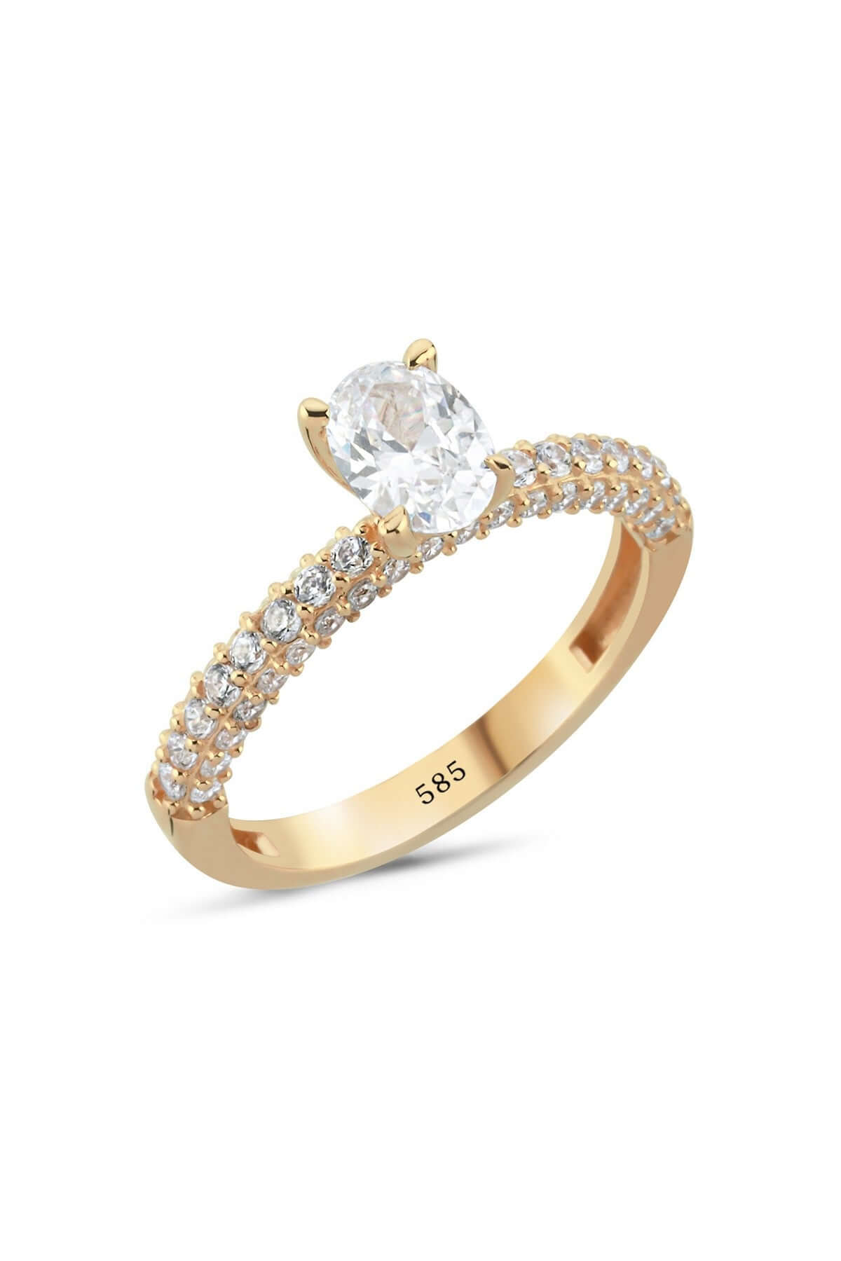 14 Ayar Altın Oval Zirkon Taşlı Açık Model Yüzük