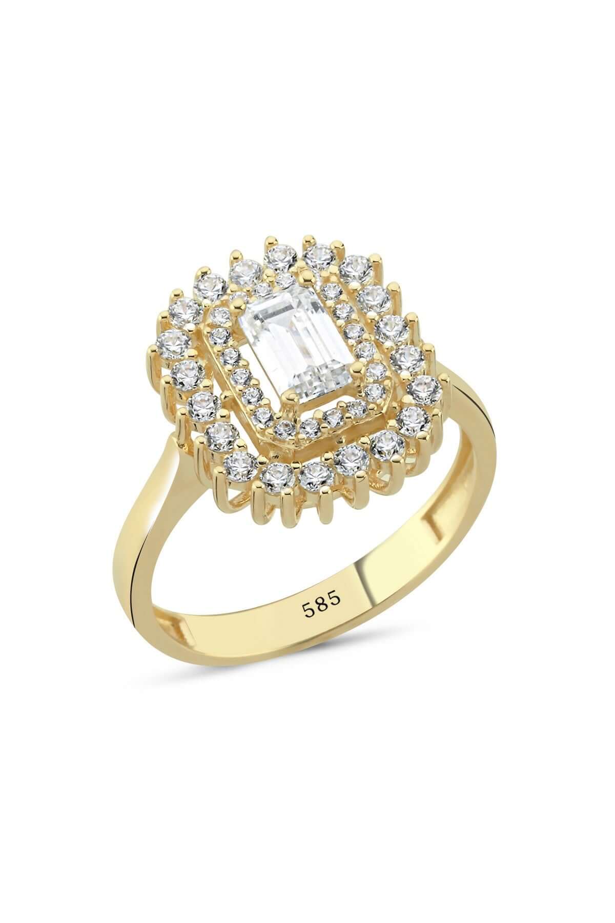 14 Ayar Altın Taşlı Baget Yüzük - 8 / SARI