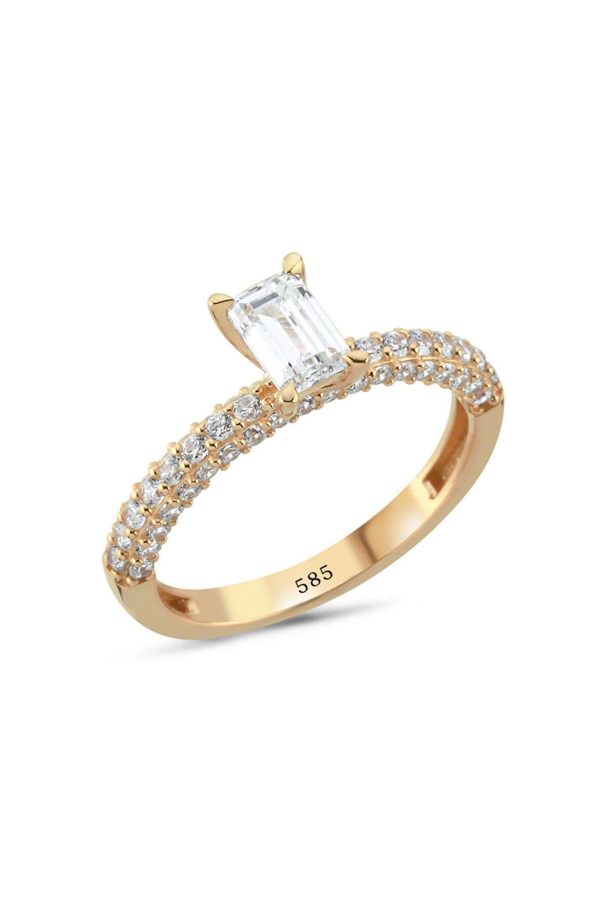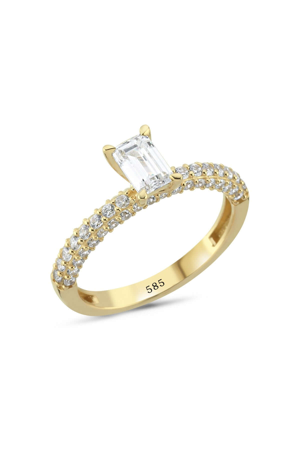 14 Ayar Altın Zirkon Taşlı Tektaş Baget Yüzük