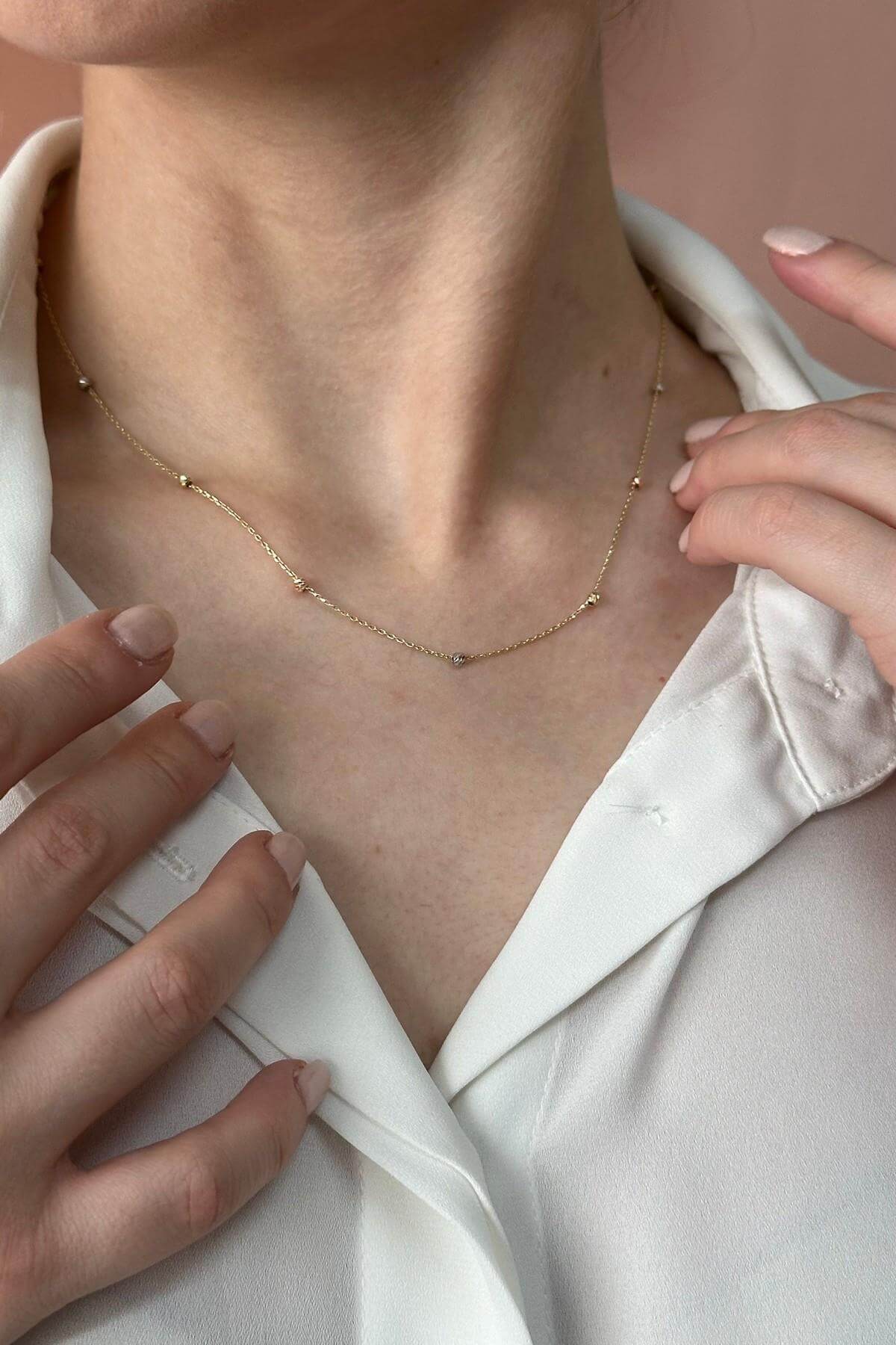 14 Ayar Altın Kadın Dorika Toplu Zincir Kolye