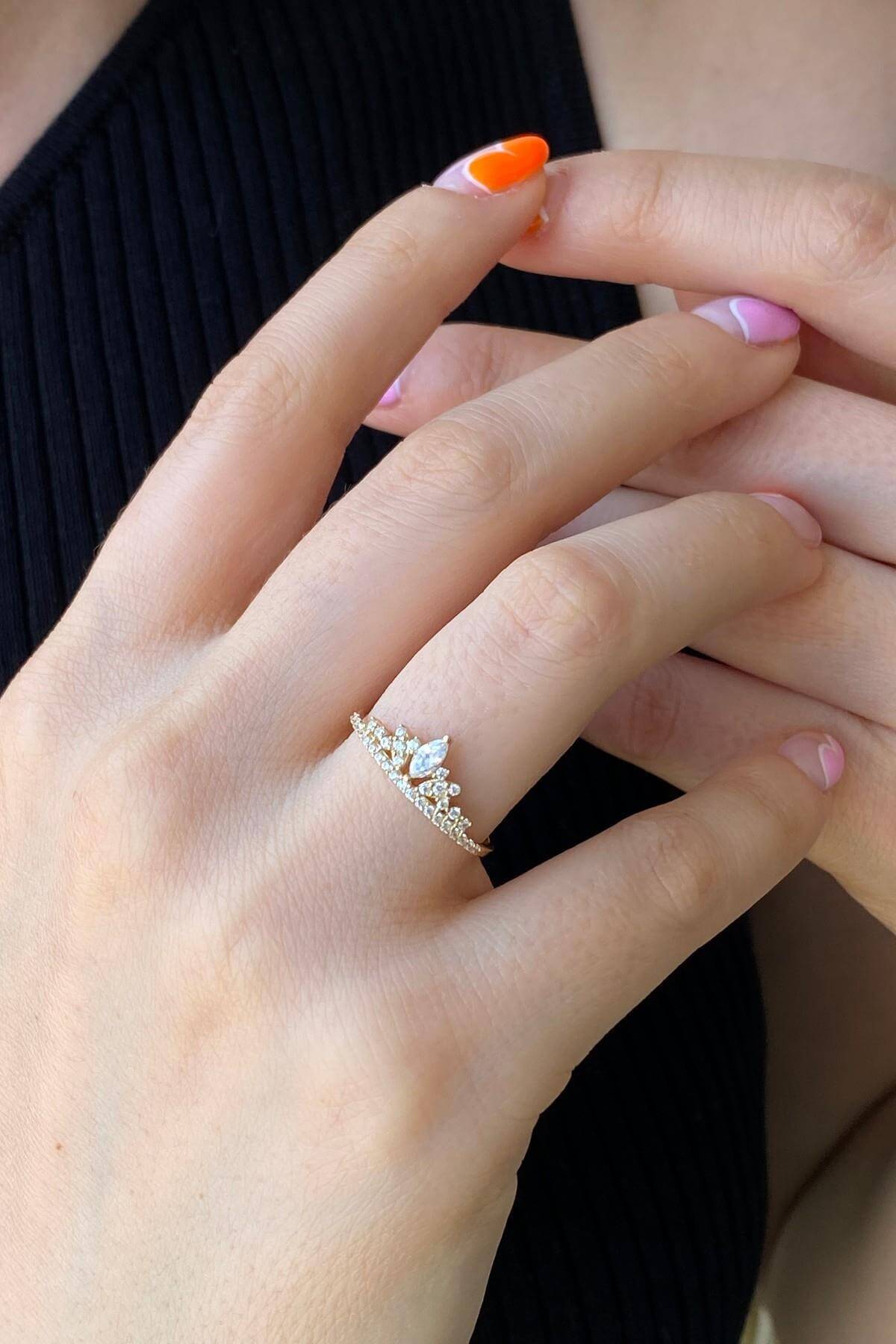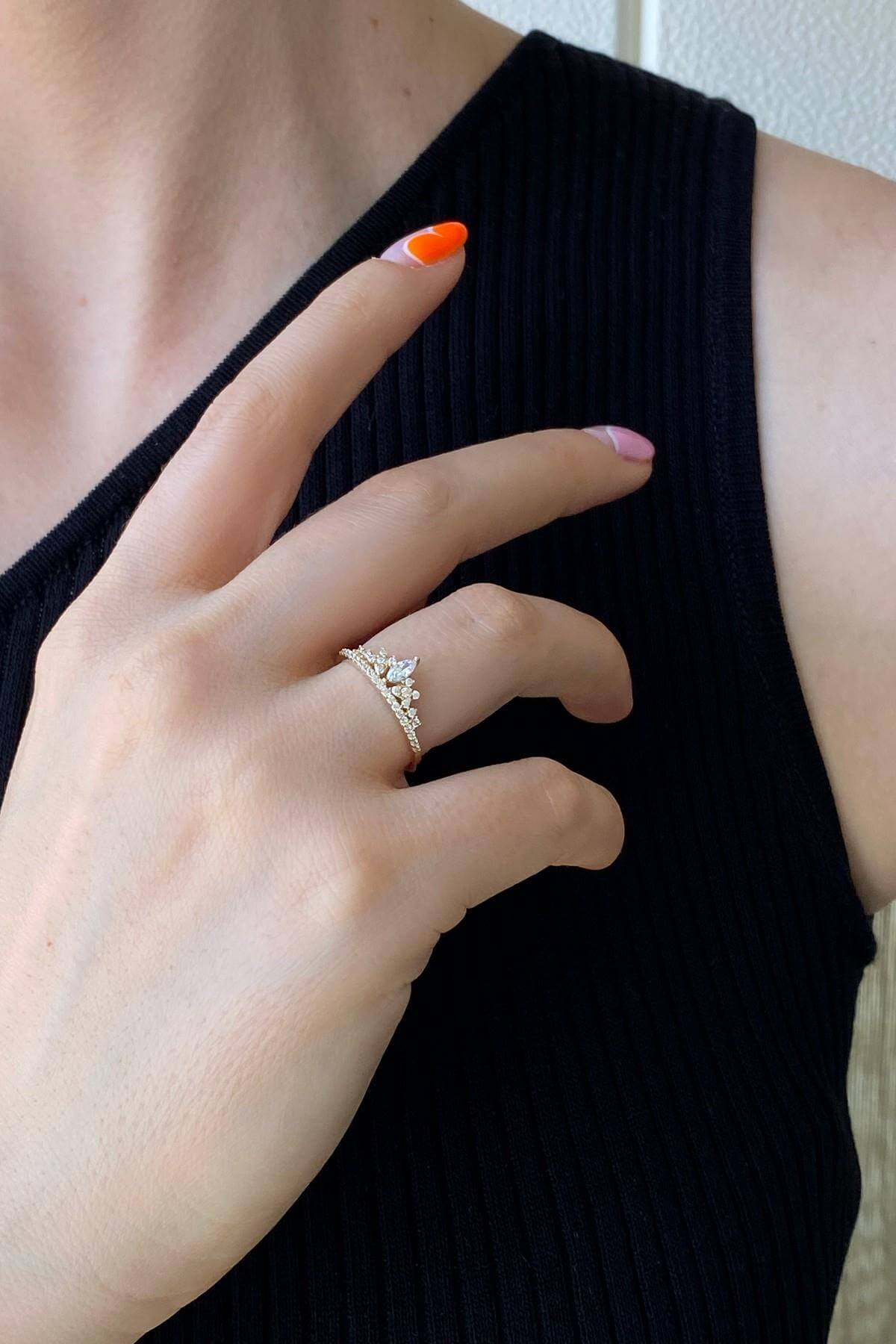 14 Ayar Altın Prenses Tacı Kadın Yüzük