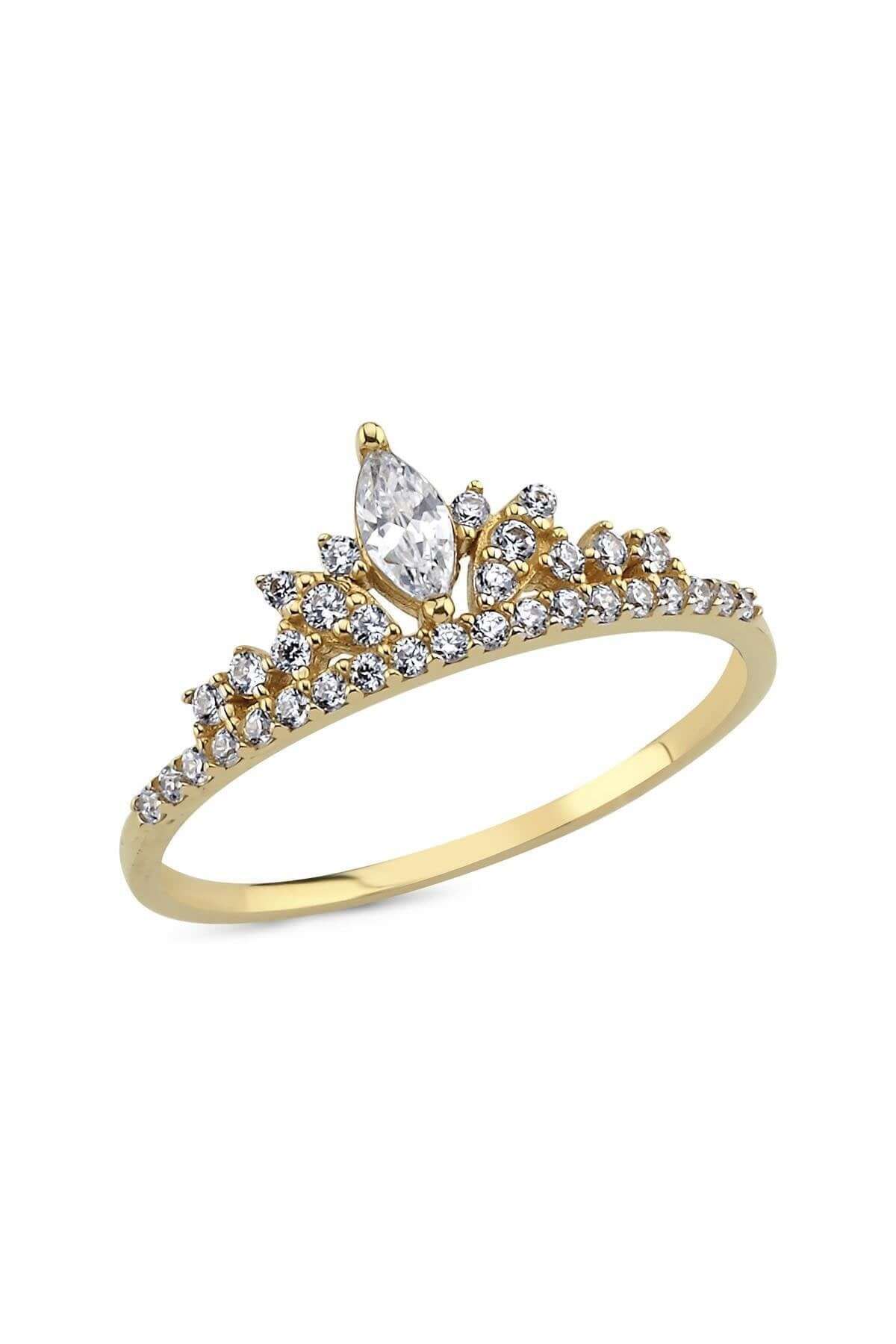 14 Ayar Altın Prenses Tacı Kadın Yüzük - 8 / SARI