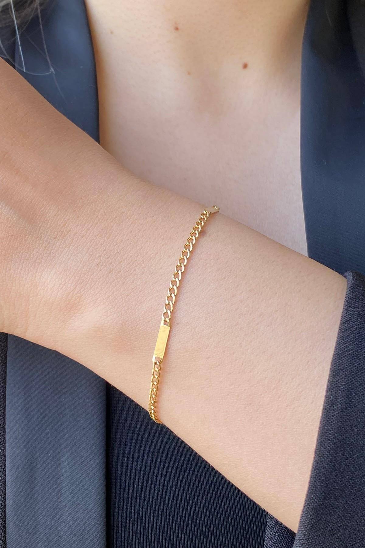 14 Ayar Altın Plakalı Gurmet Zincir Bileklik