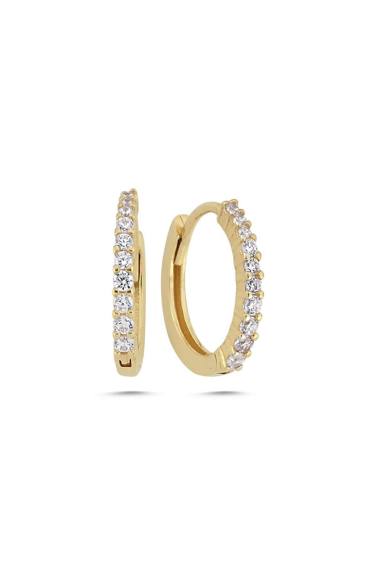 14 Ayar Altın Erkek Zirkon Taşlı Halka Küpe - SARI