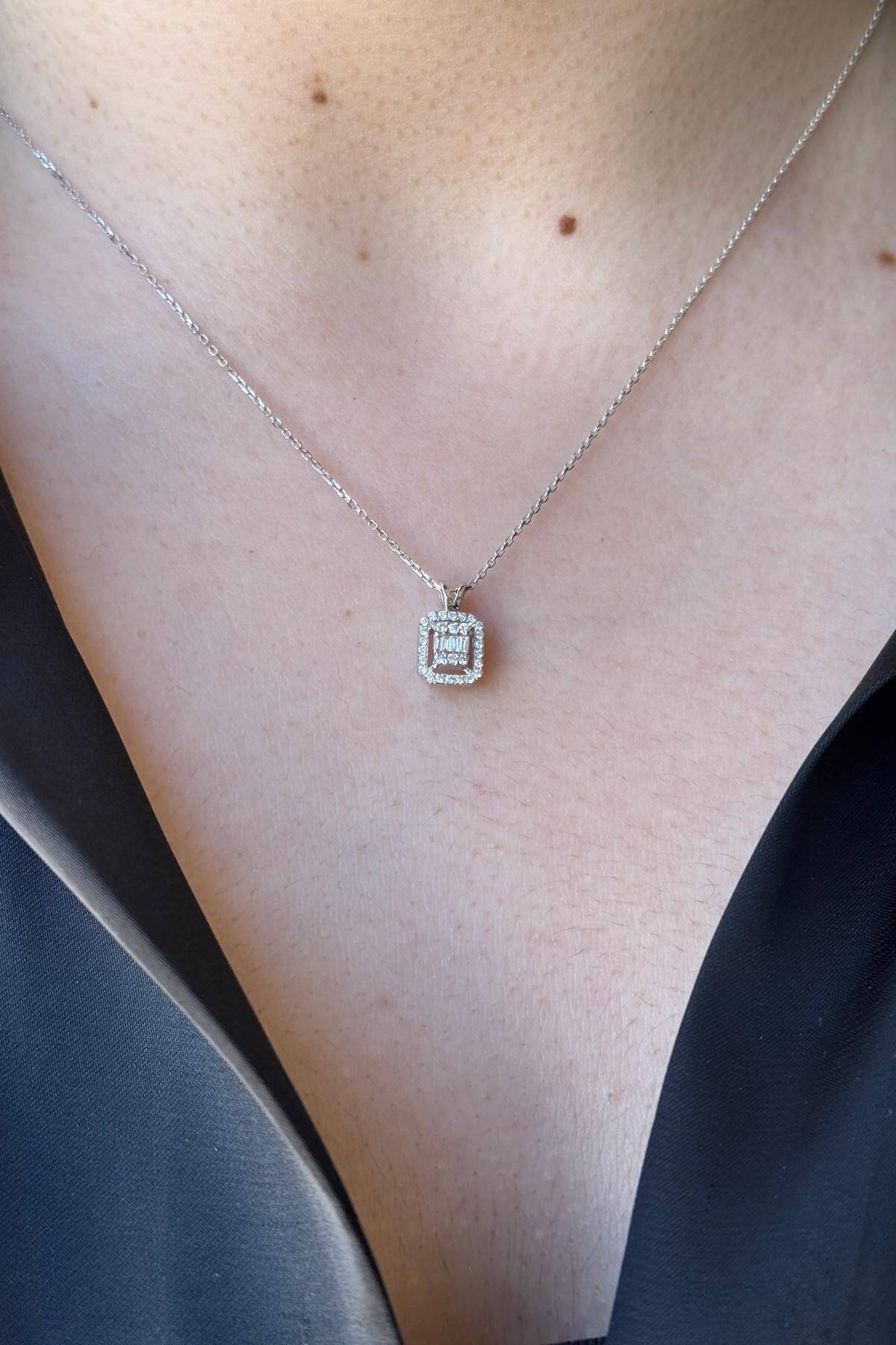 -Ürün Adı: 14 Ayar Altın 0,13 Karat Baget Pırlanta Kolye