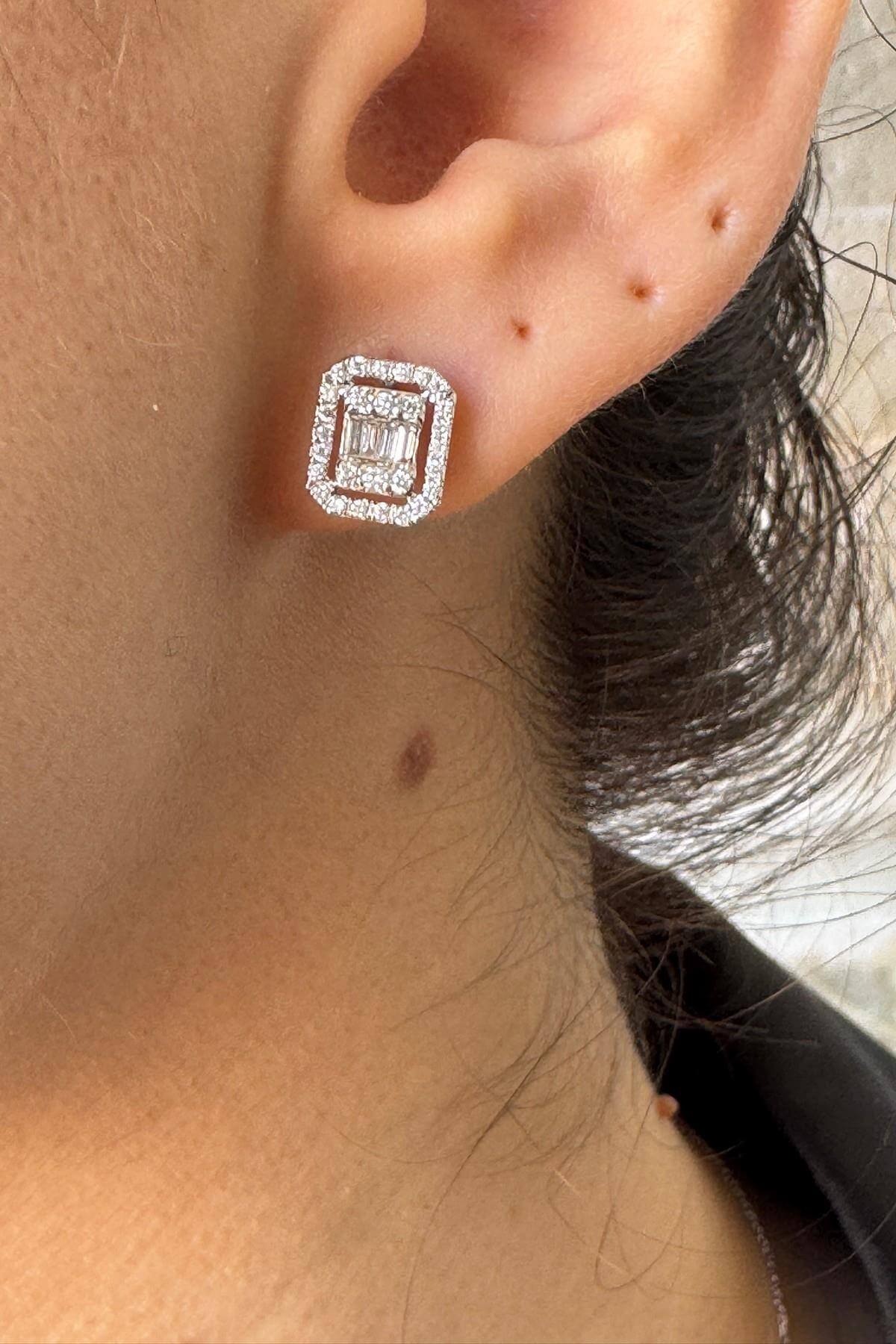 -Ürün Adı: 14 Ayar Altın 0,38 Karat Baget Pırlanta Küpe