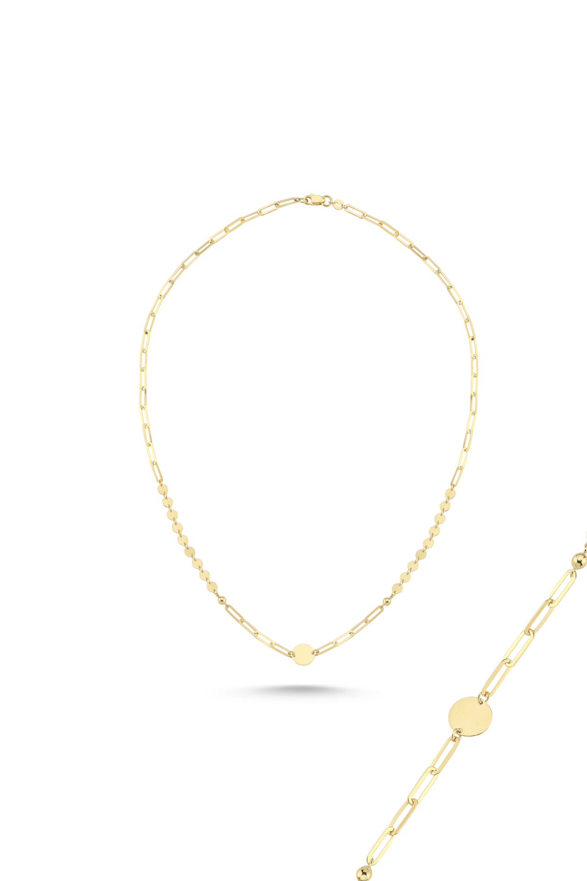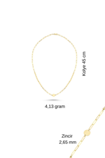 14 Ayar Altın Pullu Ataç Zincir Kolye