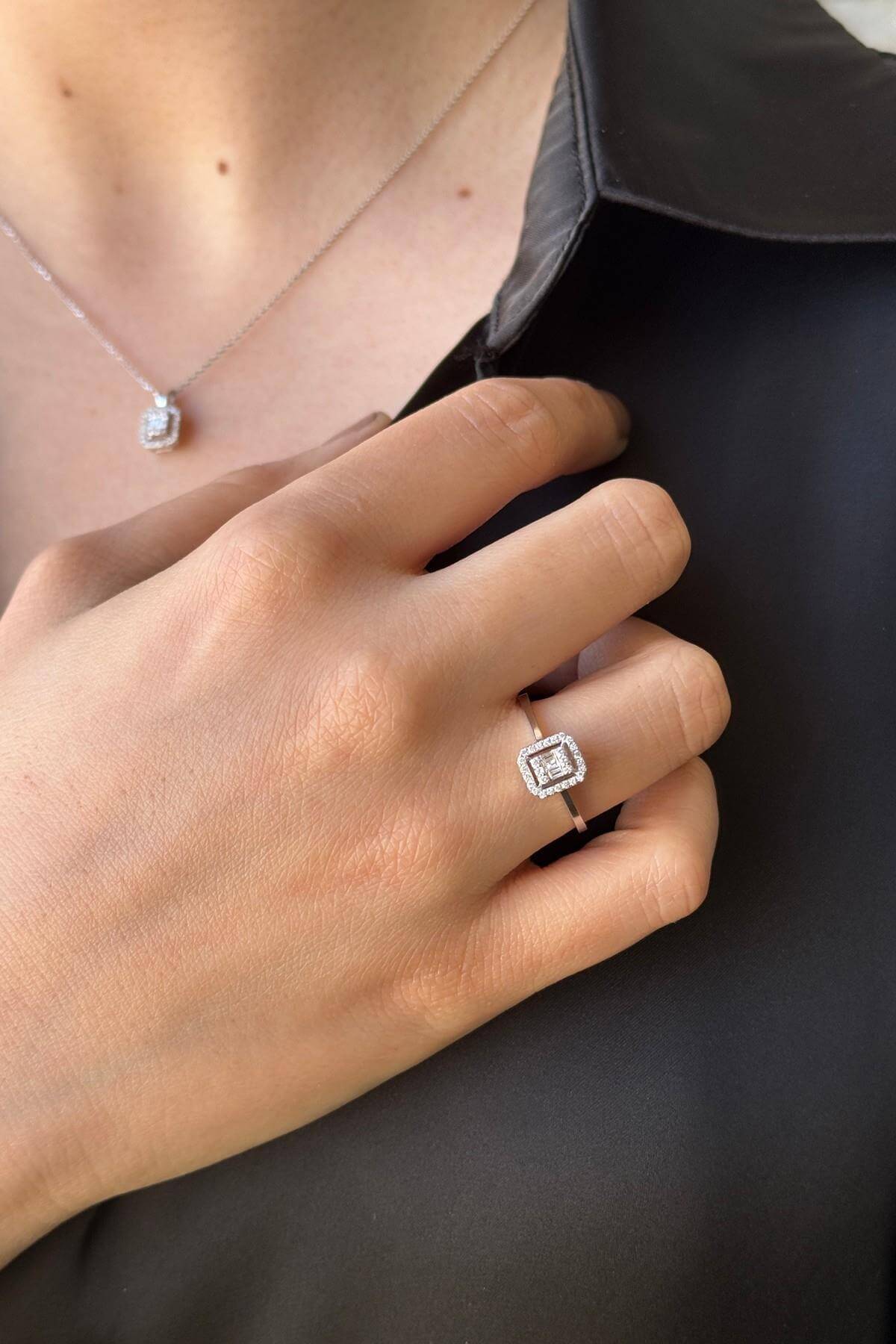 -Ürün Adı: 14 Ayar Altın 0,14 Karat Baget Pırlanta Yüzük