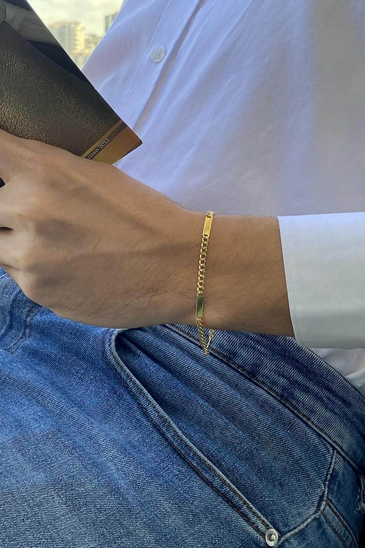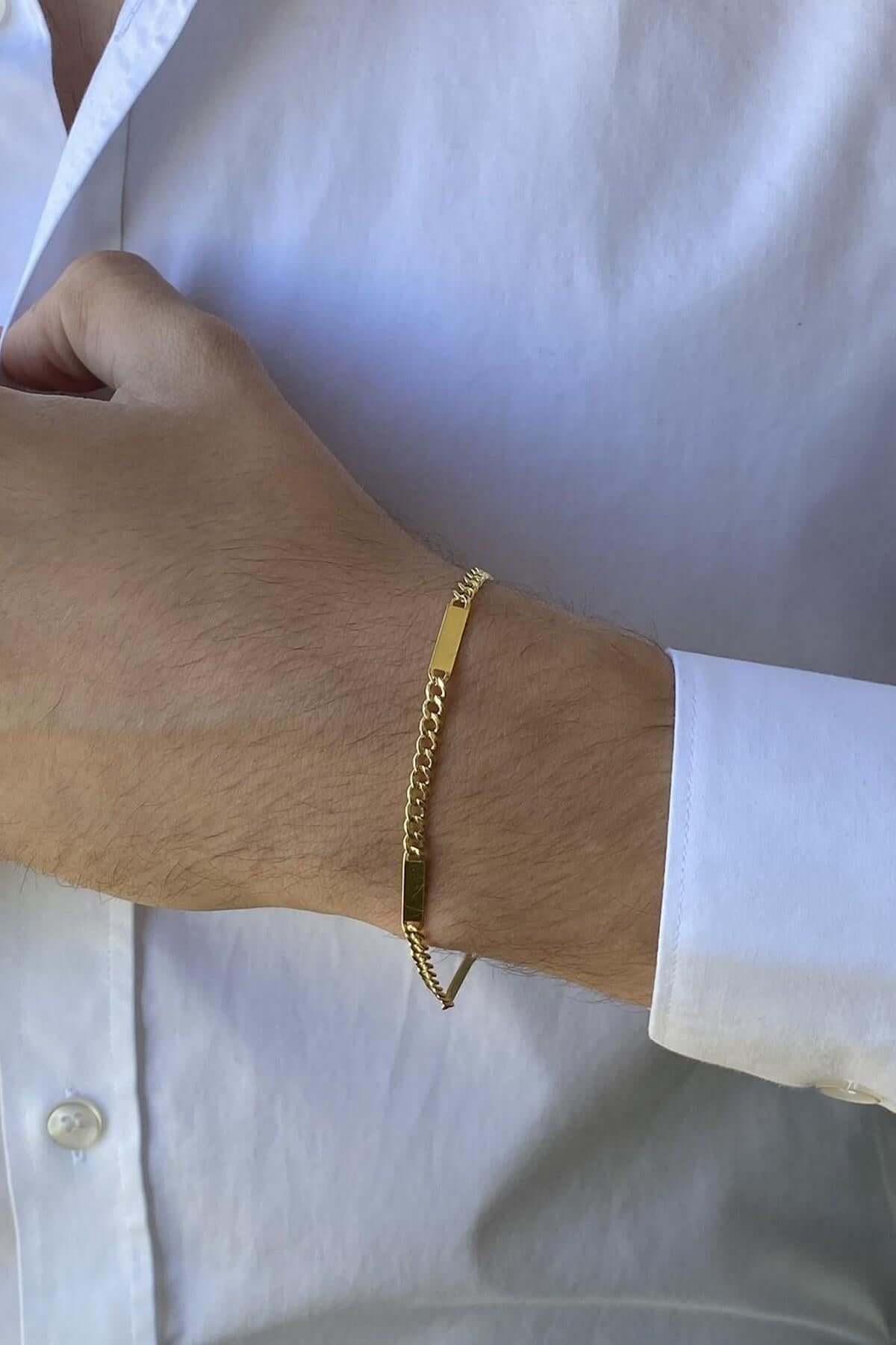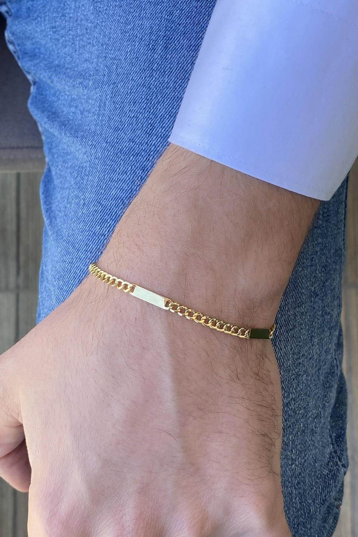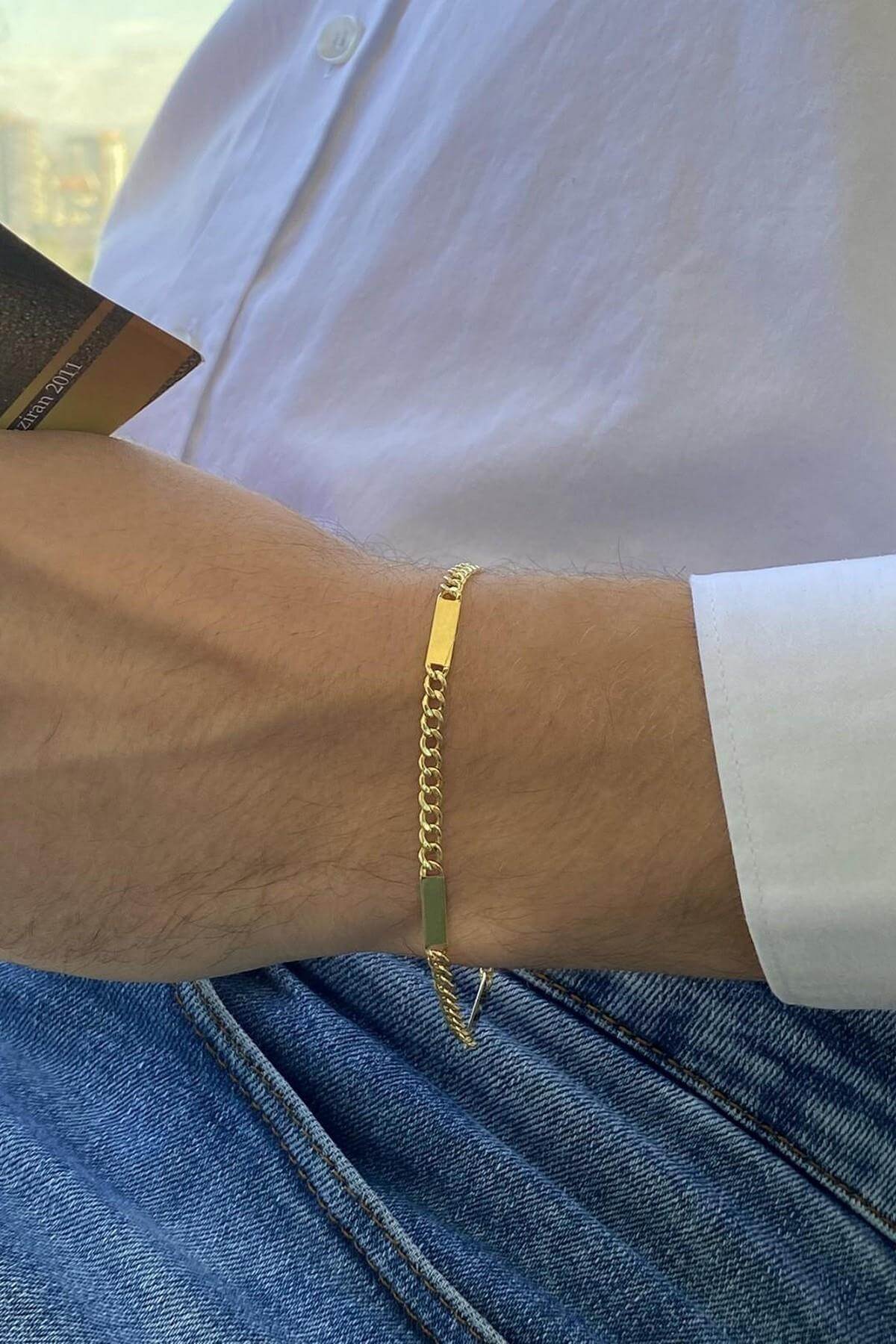 14 Ayar Altın Erkek Plakalı Gurmet Zincir Bileklik