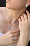 Ürün Adı: 14 Ayar Altın Çiçek Taşlı Doğal İnci Küpe Kolye Yüzük Üçlü Set