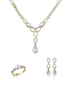 Ürün Adı: 14 Ayar Altın 7,5 mm Çift Renkli Doğal İnci Küpe Kolye Yüzük Üçlü Set