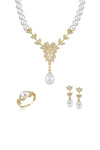 Ürün Adı: 14 Ayar Altın 7,5 mm Doğal İnci Küpe Kolye Yüzük Üçlü Set