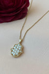 Ürün Adı: 14 Ayar Altın Fatma Elli Doğal İnci 0,09 Karat Pırlanta Kolye