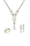 Ürün Adı: 14 Ayar Altın Halka Taşlı Çift Renk Doğal İnci Küpe Kolye Yüzük Üçlü Set