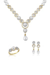 Ürün Adı: 14 Ayar Altın İkili Halka Doğal İncili Küpe Kolye Yüzük Üçlü Set