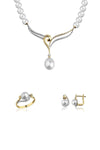 Ürün Adı: 14 Ayar Altın Kanat Çift Renk Doğal İnci Küpe Kolye Yüzük Üçlü Set