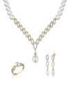 Ürün Adı: 14 Ayar Altın Oval Taşlı Çift Renk Doğal İnci Küpe Kolye Yüzük Üçlü Set