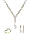 Ürün Adı: 14 Ayar Altın Parantez Taşlı Doğal İnci Küpe Kolye Yüzük Üçlü Set