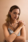 Ürün Adı: 14 Ayar Altın Üçgen Model Baget Taşlı Doğal İnci Küpe Kolye Bileklik Yüzük Dörtlü Set